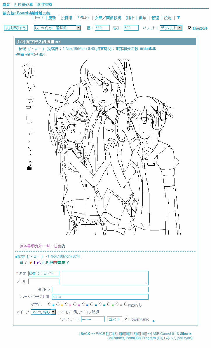 ③畫完了一年零十一個月前的お描き掲示板線稿
